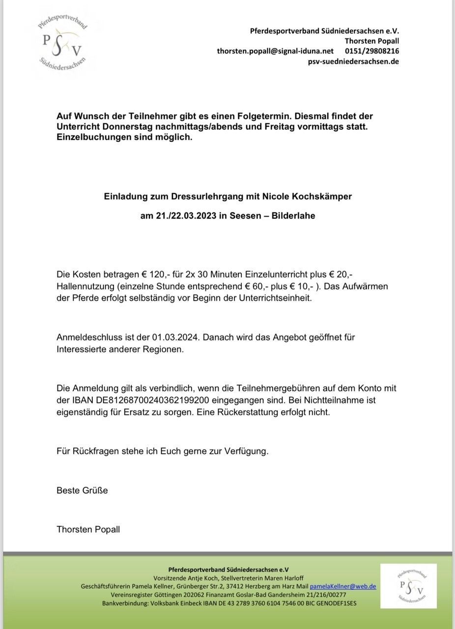 gern die Wintersaison 2024/2025 nutzen und Lehrgänge für unsere Nachwuchsreiter anbieten.